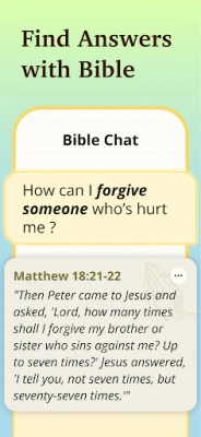 Bible Chat: Engage in conversations about faith, prayers, and verses with Bible Chat. This feature allows you to explore different interpretations of scripture, ask questions, and connect with a community of fellow seekers in a holy atmosphere. The chat interface makes it easy to share your thoughts on verses and devotional topics with others.